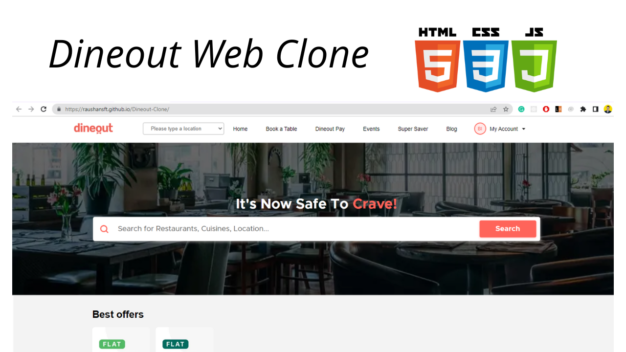 Dineout is a table booking platform helping customers to do table booking in their favourite restaurants. We were a team of four members, distributed the whole website amoung us. and make a clone website of Dineout in 5 days.
